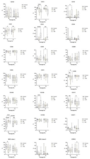 | CD29 | Integrin beta-1 | Various cell types, including mesenchymal stem cells | Integrin family members are membrane receptors involved in cell adhesion and recognition in various processes, including embryogenesis, hemostasis, tissue repair, immune response, and metastatic diffusion of tumor cells | Positive | [41,53] |