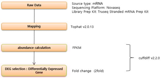 RNA extraction and sequencing were performed as described by Tilahun et al. [] for three biological replicates from the control and treatments. Total RNA was extracted and pooled according to Park et al. []. RNA purity and integrity were checked as described by Johnson et al. [], and mRNA sequencing was performed by the method followed by Kim [].