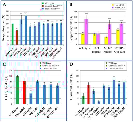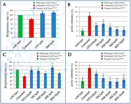 2.1. Identification of Molecules Able to Rescue the Oxidative Growth Defect of the aac2M114P Yeast Mutant