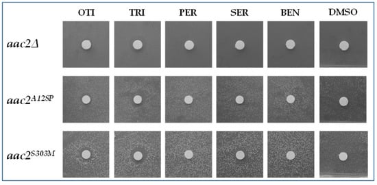 - Compounds that lead to the formation of a halo of growth near the filter. These molecules have a rescuing effect starting from the maximum concentration tested. This was the case of pergolide mesylate and benzydamine HCl.