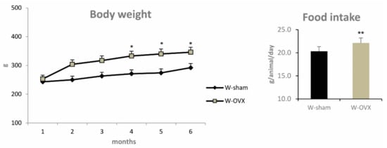2.1. Effects of Ovariectomy on Body Weight, Adiposity, Glucose Tolerance and Insulin Sensitivity