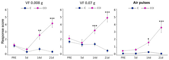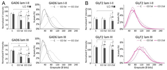 3.1. Inhibitory Transmitters in Sp5C Are Affected by the CCI-IoN