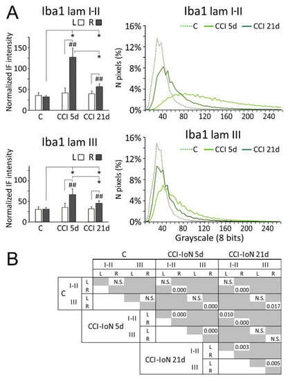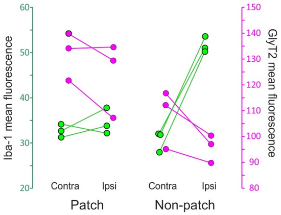 - Leinders, M.; Knaepen, L.; De Kock, M.; Sommer, C.; Hermans, E.; Deumens, R. Up-regulation of spinal microglial Iba-1 expression persists after resolution of neuropathic pain hypersensitivity. Neurosci. Lett. 2013, 554, 146–150. [Google Scholar] [CrossRef] [PubMed]