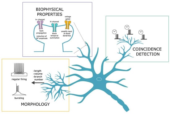 - Poirazi, P.; Papoutsi, A. Illuminating Dendritic Function with Computational Models. Nat. Rev. Neurosci. 2020, 21, 303–321. [Google Scholar] [CrossRef] [PubMed]