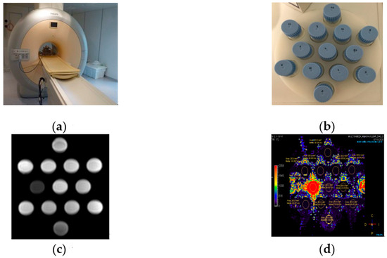 (a) MR imaging scanner (Philips Achieva 3T); (b) Samples of 1 prepared in physiological serum with concentrations covering the range of 0.0–3.2 mM; (c) MR images of the tube phantoms of 1; (d) T2 parametric map analysis.