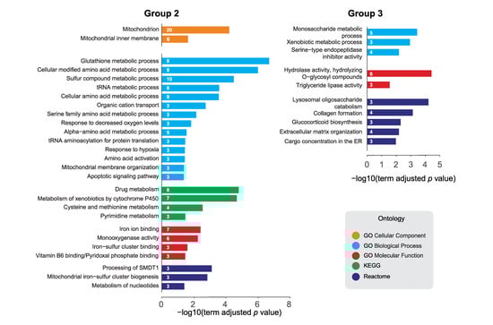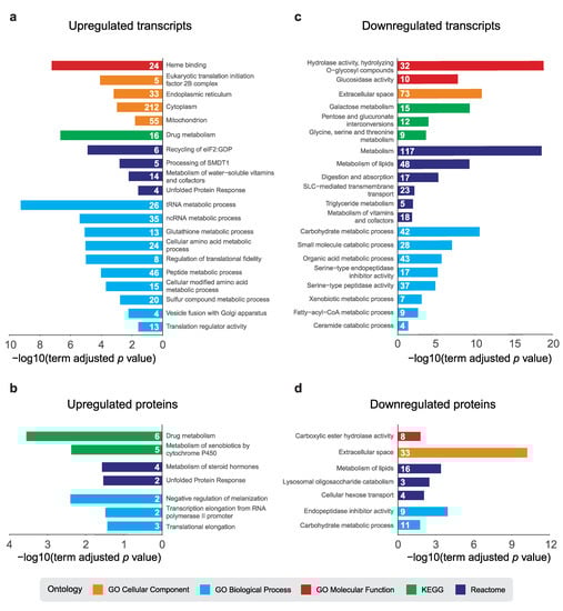 2.3. Pathway Analysis of dPerk-Dependent Alterations in Transcripts and Proteins