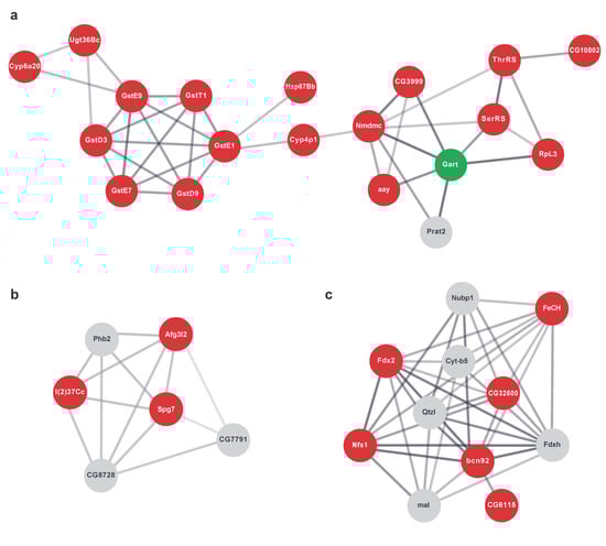 - Szklarczyk, D.; Gable, A.L.; Lyon, D.; Junge, A.; Wyder, S.; Huerta-Cepas, J.; Simonovic, M.; Doncheva, N.T.; Morris, J.H.; Bork, P.; et al. STRING v11: Protein-protein association networks with increased coverage, supporting functional discovery in genome-wide experimental datasets. Nucleic Acids Res. 2019, 47, D607–D613. [Google Scholar] [CrossRef]