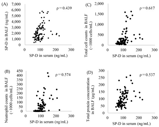 2.7. The Relationship between SP-D Concentration in BALF and Serum