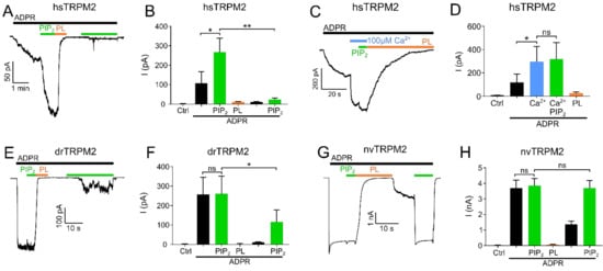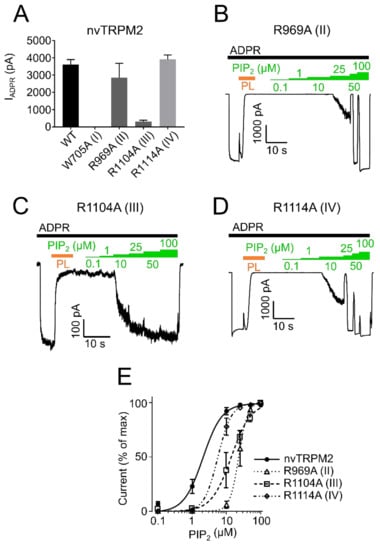 2.2. PIP2 Sensitivity Varies among TRPM2 Species