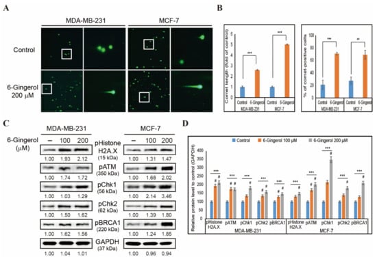 2.2. 6-Gingerol Induces DDR in Breast Cancer Cells