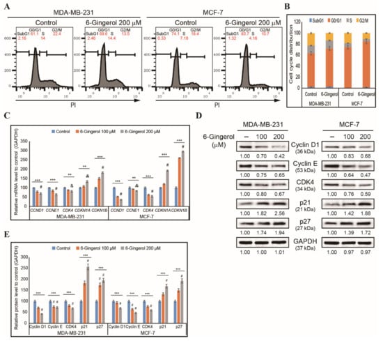 2.3. 6-Gingerol Induces G0/G1 Cell Cycle Arrest in Breast Cancer Cells