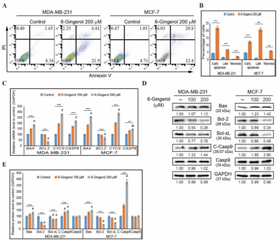 2.4. 6-Gingerol Induces Intrinsic Apoptosis in Breast Cancer Cells