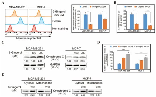2.5. 6-Gingerol Induces Loss of Mitochondrial Membrane Potential and Release of Cytochrome c