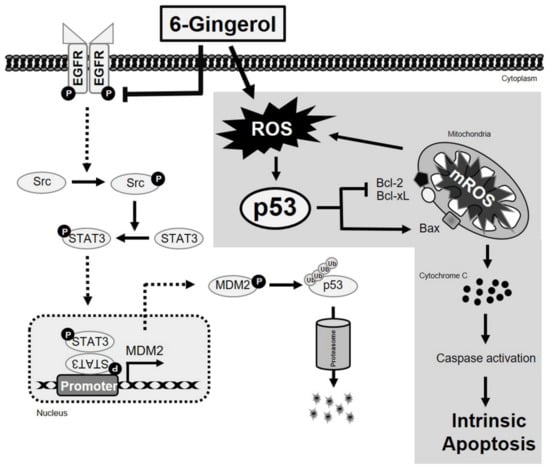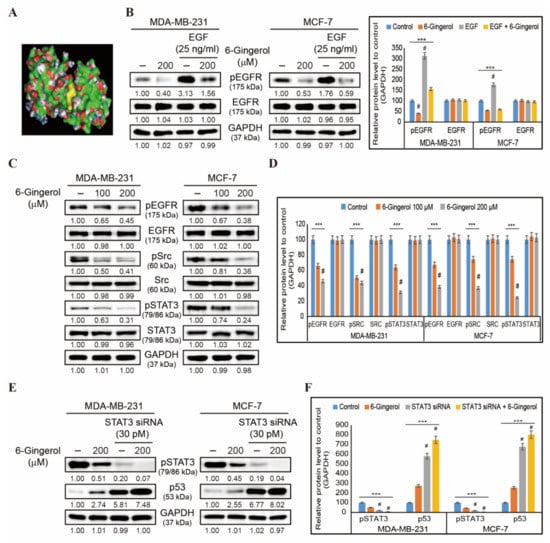 2.6. 6-Gingerol Inhibits EGFR/Src/STAT3 Pathway and Signals to p53 Upregulation
