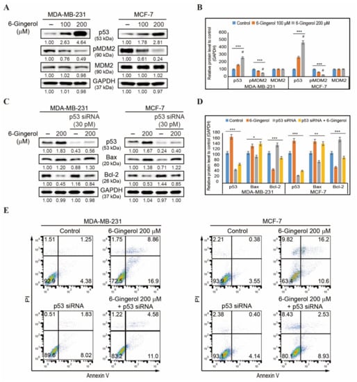 2.7. 6-Gingerol Induces p53-Dependent Intrinsic Apoptosis in Breast Cancer Cells