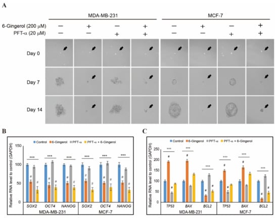 2.8. 6-Gingerol Inhibits p53-Dependent Tumorsphere Formation in Breast Cancer Cells
