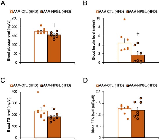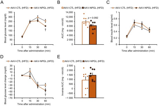2.3. Effects of NPGL-Precursor Gene Overexpression on Glucose Homeostasis and Insulin Sensitivity under HFD Conditions