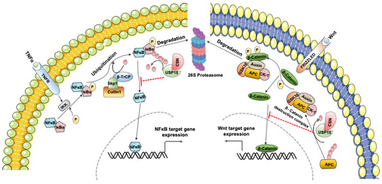 - Yun, S.I.; Kim, H.H.; Yoon, J.H.; Park, W.S.; Hahn, M.J.; Kim, H.C.; Chung, C.H.; Kim, K.K. Ubiquitin specific protease 4 positively regulates the WNT/beta-catenin signaling in colorectal cancer. Mol. Oncol. 2015, 9, 1834–1851. [Google Scholar] [CrossRef] [PubMed]