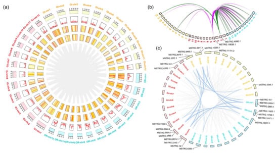 The conserved regions in wild-japonica, wild-indica, and japonica-indica rice pairs were identified by BLAST with sequence alignment. The homologous lncRNA sequence number >100 nt and percentage identity >90% in wild-japonica, wild-indica, and japonica–indica were screened, and common homologous sequences appeared in all the three groups were selected as sequence-conserved lncRNAs. The positional conservation of lncRNAs was analyzed using a method described previously []. The nearest upstream and downstream protein-coding genes are used to perform pairwise collinearity analyses based on the genomes of wild and cultivated rice. If 4 out of 5 genes are close in their genomic loci, the lncRNA in the region is considered to be positionally conserved lncRNAs.