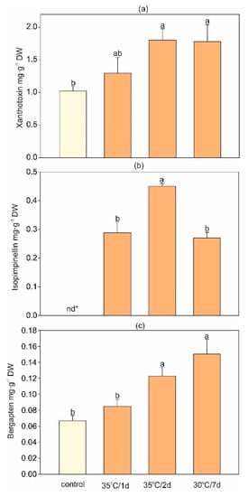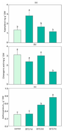 Rysiak, A.; Dresler, S.; Hanaka, A.; Hawrylak-Nowak, B.; Strzemski, M.; Kováčik, J.; Sowa, I.; Latalski, M.; Wójciak, M. High Temperature Alters Secondary Metabolites and Photosynthetic Efficiency in Heracleum sosnowskyi. Int. J. Mol. Sci. 2021, 22, 4756. https://doi.org/10.3390/ijms22094756