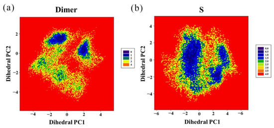 - Altis, A.; Nguyen, P.H.; Hegger, R.; Stock, G. Dihedral angle principal component analysis of molecular dynamics simulations. J. Chem. Phys. 2007, 126, 1–10. [Google Scholar] [CrossRef] [PubMed]
