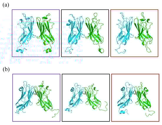 - Hornak, V.; Abel, R.; Okur, A.; Strockbine, B.; Roitberg, A.; Simmerling, C. Comparison of multiple Amber force fields and development of improved protein backbone parameters. Proteins 2006, 65, 712–725. [Google Scholar] [CrossRef]