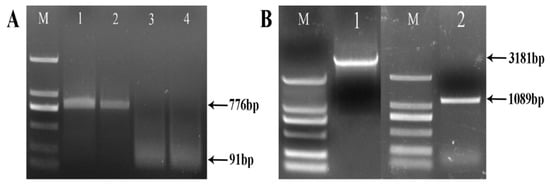 PCR amplification of RsVAP of Radopholus similis. (A) RACE amplification of RsVAP, M: DS2000 marker; 1–2: 5′ end of RsVAP; 3–4: 3′ end of RsVAP. (B) Full-length amplification of RsVAP, M: DS2000 marker; 1: full-length DNA of RsVAP; 2: full-length cDNA of RsVAP.