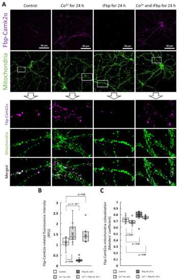 2.2. The Cobalt-Induced Fbp2 Mitochondrial Localization Enhances the Camk2α Autoactivation in Hippocampal Neurons
