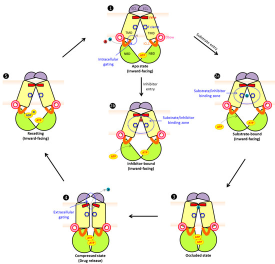 - Johnson, Z.L.; Chen, J. ATP Binding Enables Substrate Release from Multidrug Resistance Protein 1. Cell 2018, 172, 81–89.e10. [Google Scholar] [CrossRef] [PubMed]