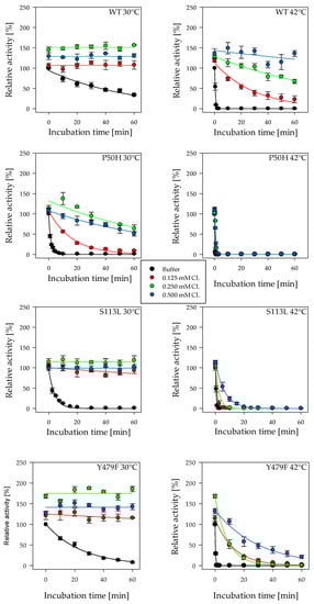 4.4. Influence of Temperature and CL on the Enzyme Activity