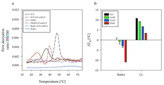 - Motlagh, L.; Golbik, R.; Sippl, W.; Zierz, S. Stabilization of the Thermolabile Variant S113L of Carnitine Palmitoyltransferase II. Neurol. Genet. 2016, 2. [Google Scholar] [CrossRef] [PubMed]