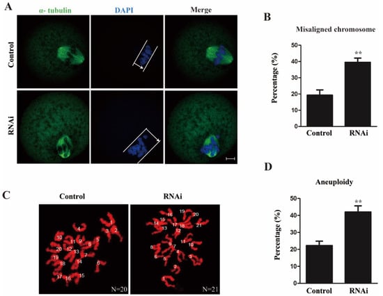 2.3. Rae1 Interference Induces Abnormal Chromosome Alignment and a High Incidence of Aneuploidy