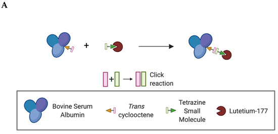The following are available online at https://www.mdpi.com/article/10.3390/ijms22094843/s1, Figure S1: MALDI-MS confirms conjugation of TCO to BSA, Figure S2: Biodistribution studies show retention of RT in the tumor, Figure S3: Preliminary dose optimization studies for RT regimens, Figure S4: Dose optimization studies for RT regimens, Table S1: Biodistribution studies. %ID/g values for the complete tissue list, for each mouse (n = 3 per timepoint), Table S2: Biodistribution studies, intravenous administration. %ID/g values for the complete tissue list, for each mouse (n = 3 per timepoint).