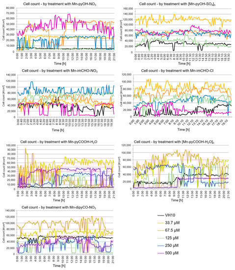 Analysis of VH10 cell count over time following the Mn(II) complexes treatment acquired using the HoloMonitorM4.