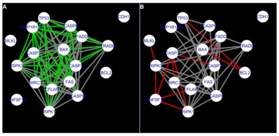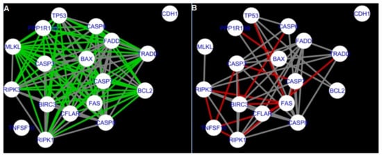 In addition, networks built based on the experimental data were compared to each other as shown in Figure 10, Figure 11, Figure 12 and Figure 13 for apoptosis and in Figure 19, Figure 20 and Figure 21 for programmed cell death. Throughout the paper, necroptosis is used synonymously for programmed cell death.