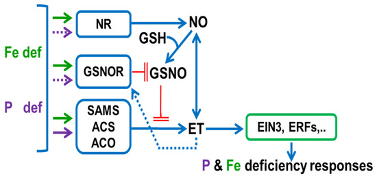 5. Role of ET and NO in the Regulation of Fe and P Deficiency Responses. Similarities and Differences