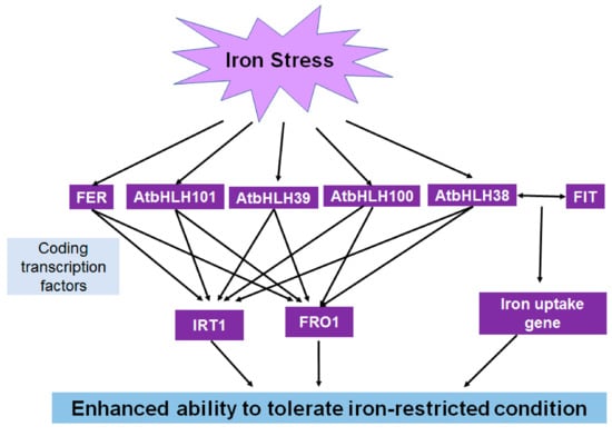 | AtILR3, AtbHLH38, 39, 100, 101, 115 | Regulate iron balance | [74] |