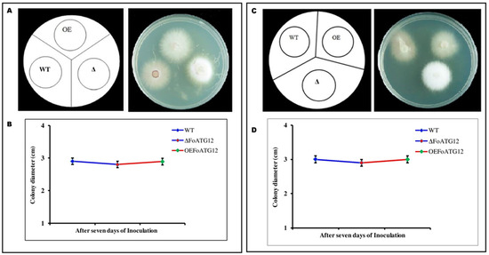4.4. Overexpression (OE) of the Mutant FoATG12 Strains