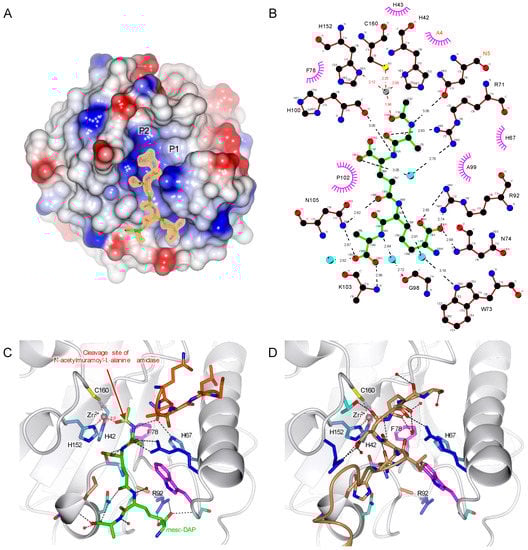 - Cho, S.; Wang, Q.; Swaminathan, C.P.; Hesek, D.; Lee, M.; Boons, G.-J.; Mobashery, S.; Mariuzza, R.A. Structural insights into the bactericidal mechanism of human peptidoglycan recognition proteins. Proc. Natl. Acad. Sci. USA 2007, 104, 8761–8766. [Google Scholar] [CrossRef] [PubMed]