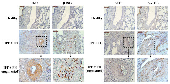 In an animal model of bleomycin-induced lung fibrosis and PH, p-JAK2/p-STAT3 were overexpressed and localized in pulmonary arteries [9].