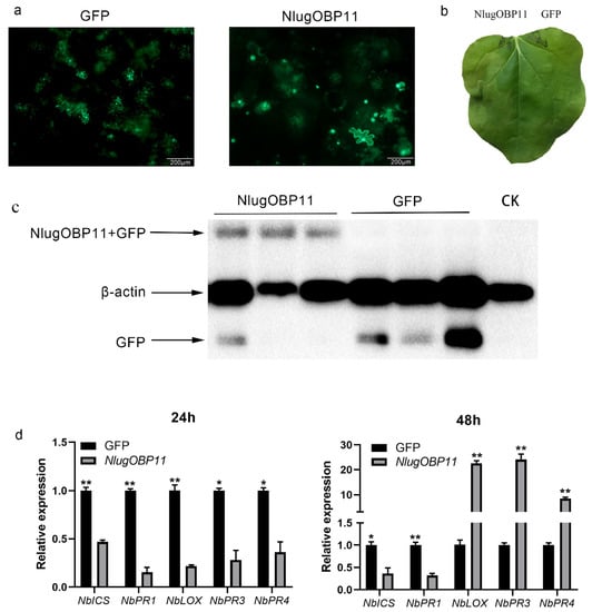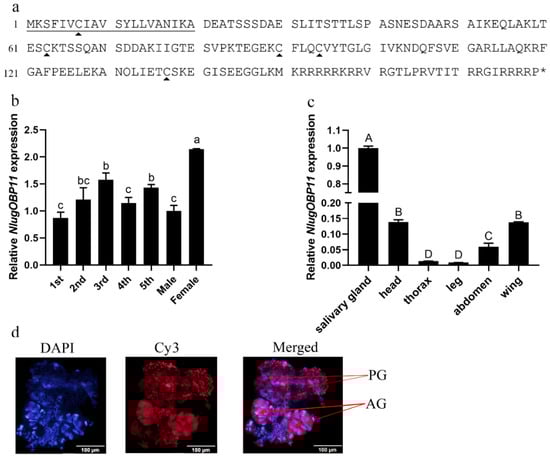 2.2. NlugOBP11 Is Secreted into Rice during BPH Feeding