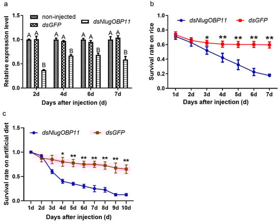 2.3. NlugOBP11 Is Indispensable for BPH Growth