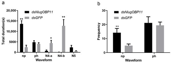 2.4. NlugOBP11 Affects BPH Feeding Behavior