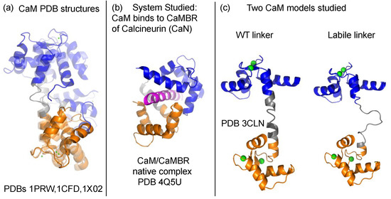 - Gsponer, J.; Christodoulou, J.; Cavalli, A.; Bui, J.M.; Richter, B.; Dobson, C.M.; Vendruscolo, M. A Coupled Equilibrium Shift Mechanism in Calmodulin-Mediated Signal Transduction. Structure 2008, 16, 736–746. [Google Scholar] [CrossRef] [PubMed]