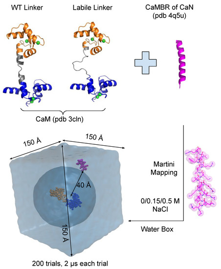 - Anthis, N.J.; Clore, G.M. The length of the calmodulin linker determines the extent of transient interdomain association and target affinity. J. Am. Chem. Soc. 2013, 135, 9648–9651. [Google Scholar] [CrossRef] [PubMed]