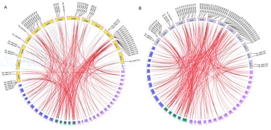 2.2. Gene Chromosomal Location, Duplication and Synteny Analysis of NACs in Cotton