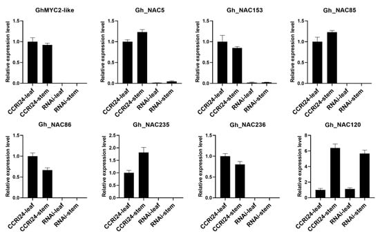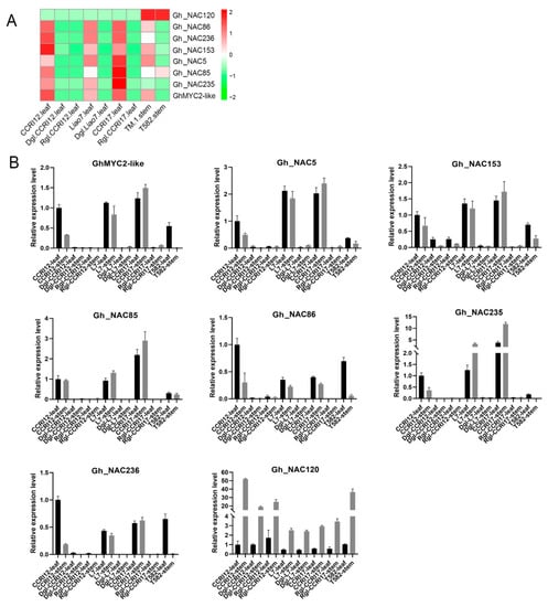 4.3. Gene Expression and Correlation Analysis of GhMYC2-Like and NAC Genes