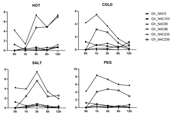 2.7. Expression Profiling of 6 Gland-Related NAC Genes under Various Stresses