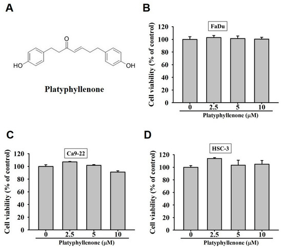 2.1. Platyphyllenone Does Not Affect the Viability of Human Oral Cancer Cells