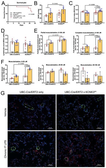 2.5. Mice with kcnk3 Knocked Out as Adults Have High Mortality and Develop Pulmonary Hypertension in Response to Low Dose Lipopolysaccharide